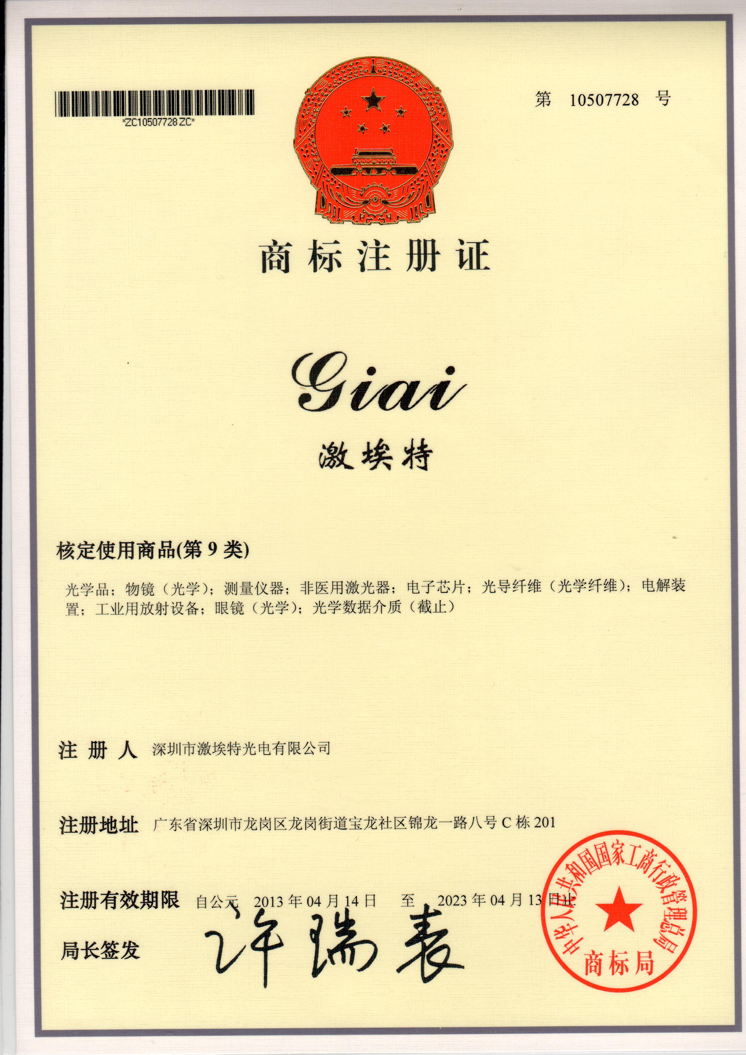 商標(biāo)注冊證