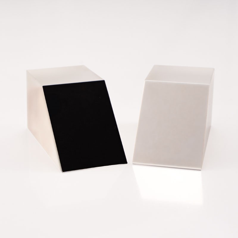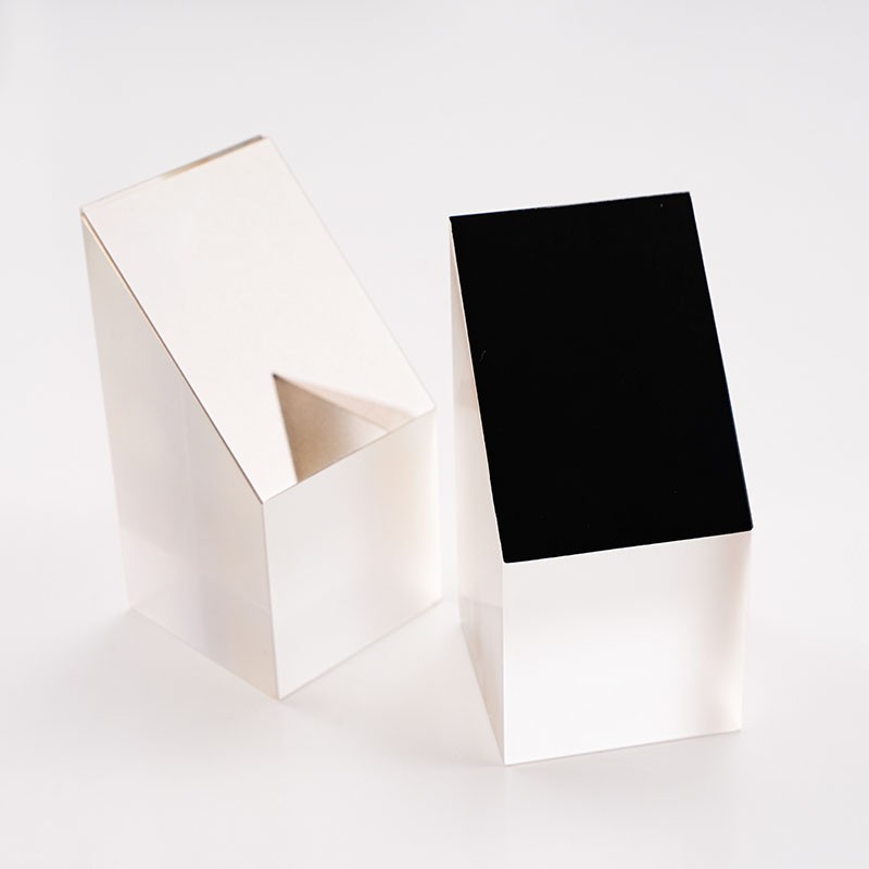 半五角棱鏡是一種特殊的光學(xué)元件,它的結(jié)構(gòu)特點(diǎn)是由五棱鏡對切而成,是光束定角度(通常為45°)轉(zhuǎn)向器件。半五角棱鏡具有許多優(yōu)點(diǎn),在應(yīng)用中,半五角棱鏡常被用于望遠(yuǎn)鏡等系統(tǒng)中,使光束實(shí)現(xiàn)固定的45°轉(zhuǎn)折。半五角棱鏡的反射面通常鍍有鋁膜,并加以黑漆保護(hù),而其入射面和出射面則鍍有MgF2(氟化鎂)增透膜,以增強(qiáng)其光學(xué)性能。