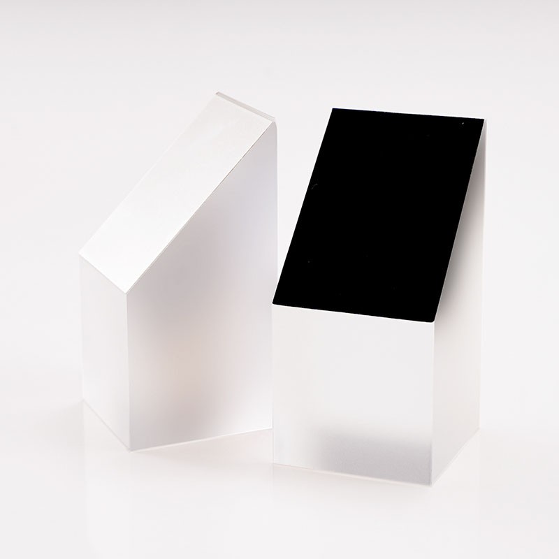半五角棱鏡是一種特殊的光學(xué)元件,它的結(jié)構(gòu)特點(diǎn)是由五棱鏡對切而成,是光束定角度(通常為45°)轉(zhuǎn)向器件。半五角棱鏡具有許多優(yōu)點(diǎn),在應(yīng)用中,半五角棱鏡常被用于望遠(yuǎn)鏡等系統(tǒng)中,使光束實(shí)現(xiàn)固定的45°轉(zhuǎn)折。半五角棱鏡的反射面通常鍍有鋁膜,并加以黑漆保護(hù),而其入射面和出射面則鍍有MgF2(氟化鎂)增透膜,以增強(qiáng)其光學(xué)性能。